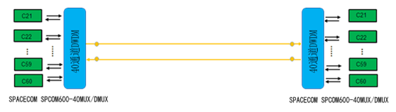 The SPACECOM DWDM dense wave division system multiplexes optical signals of different wavelengths into a single optical fiber for transmission.