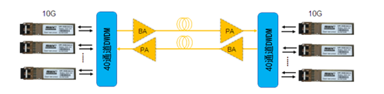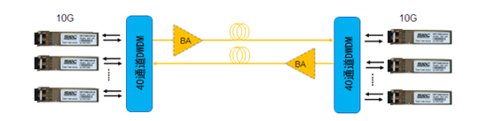When the line loss is between 26dB and 30dB, a power amplifier EDFA-BA and a front amplifier EDFA-PA can be added on both sides to solve the problem: