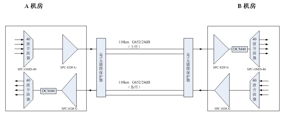 A and B can achieve two-way 110KM communication, and can bear A maximum of 40 service channels.