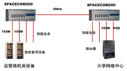 The four-wave CWDM system equipment of SPACECOM200 from SPACECOM is adopted to provide a 4-channel 155M service interface.
