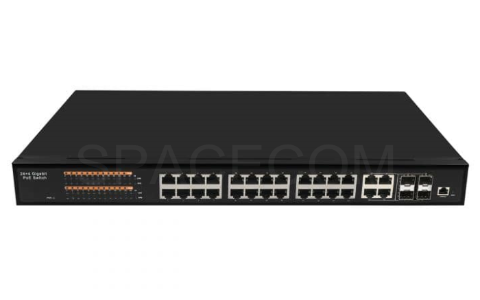 Beijing Spacecom Co., LTD.,The Gigabit Managed PoE Switch is a new generation Gigabit Managed PoE Switch with 24-Port 10/100/1000Base-TX and 4xCombo Gigabit (TP+SFP) that provide stable and reliable Ethernet transmission offered by Spacecom, with high quality design and reliability. It is positioning in the broadband network market, to offer and realize Ethernet data exchange, convergence and long-distance optical transmission with efficient bandwidth and reliable fiber optic network solutions for users. The switch complies with various characteristics such as mini size, no fan, low power consumption, high reliability and stability, and easy to maintain.