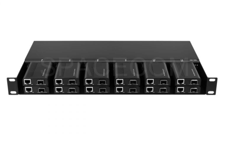 Beijing Spacecom Co., LTD.,provides Mini 10/100Base Fast Ethernet / 1000Base Gigabit Fiber Media Converter and SFP Fiber Media Converter, as well as 1U 12 Slots Media Converter Rack Mount Chassis specially designed for accommodating chassis-based Mini Media Converters. The Mini Media converter is designed for Space Saving and powered by a single internal universal power supply, eliminating the need for the multiple power connections which associated with multiple converter installations.